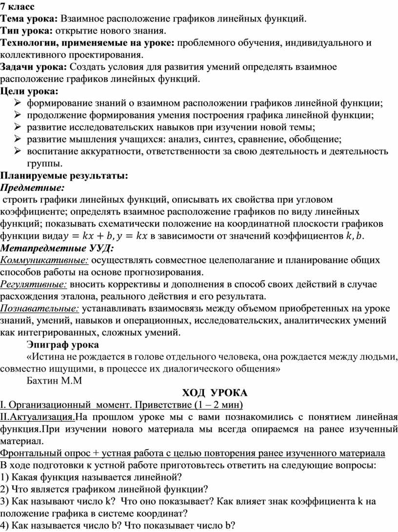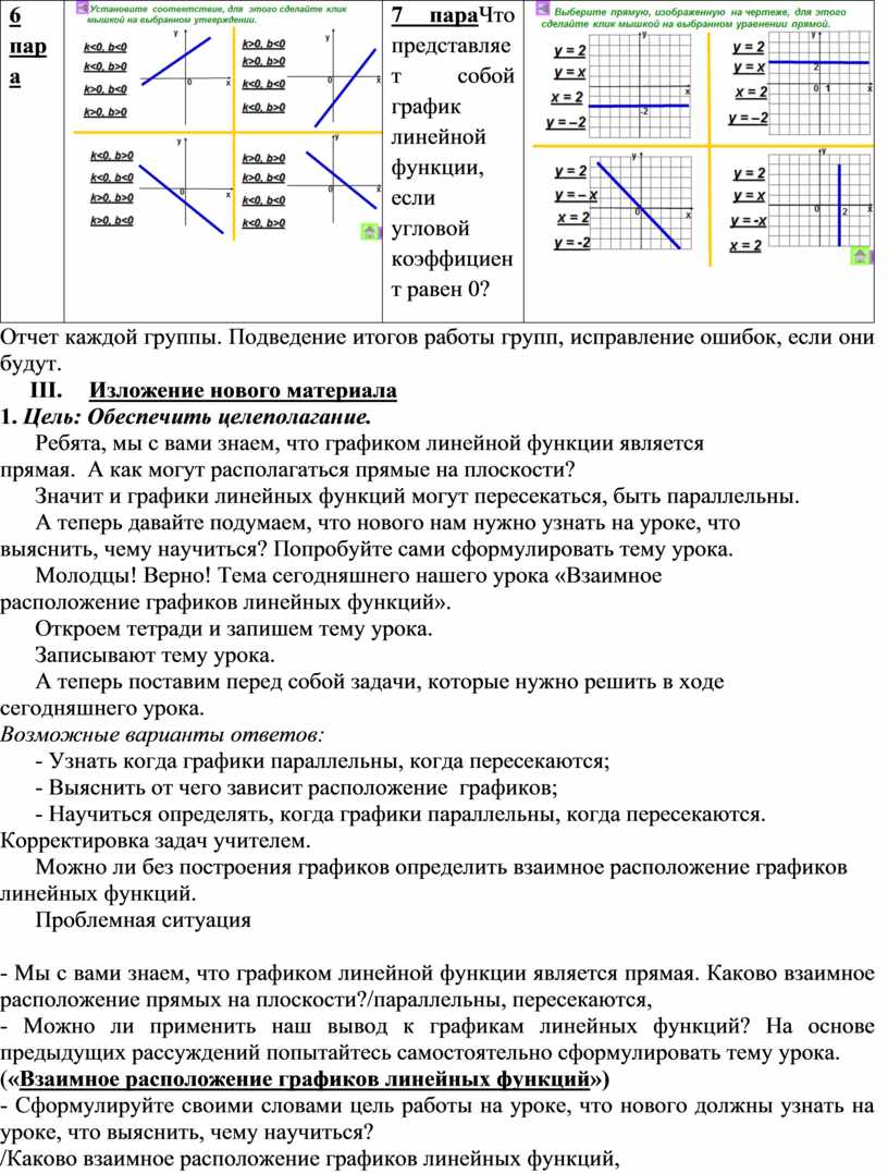 («Взаимное расположение графиков линейных функций»)