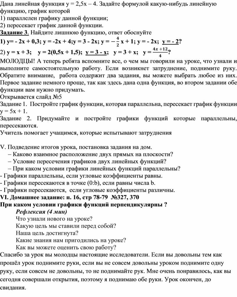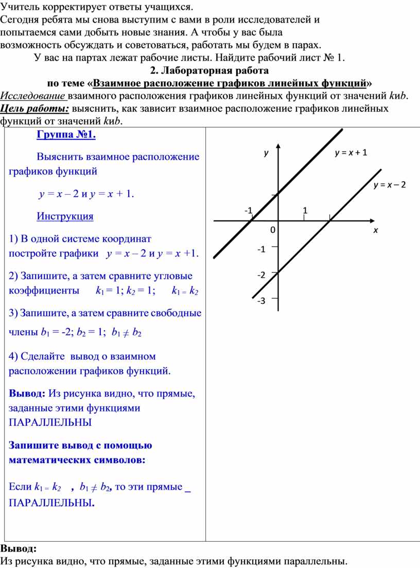 - Научиться определять, когда графики параллельны, когда пересекаются.