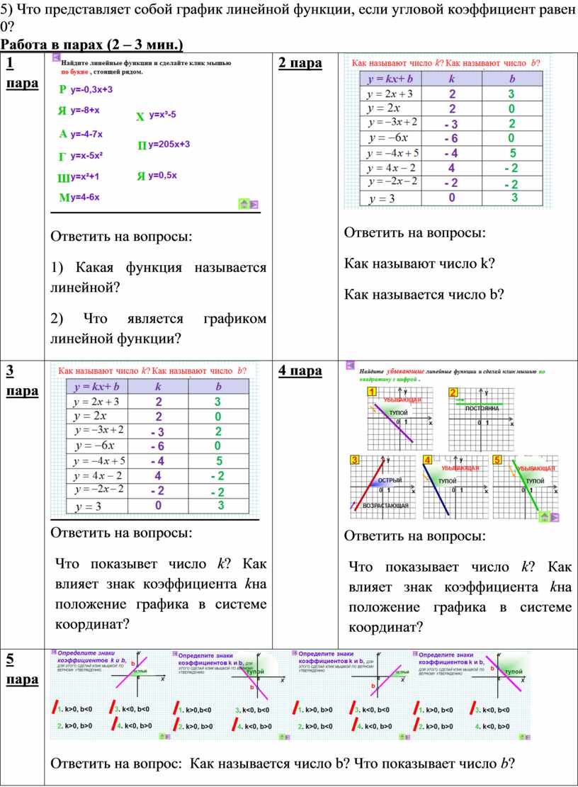 7 параЧто представляет собой график линейной функции, если угловой коэффициент равен 0? |