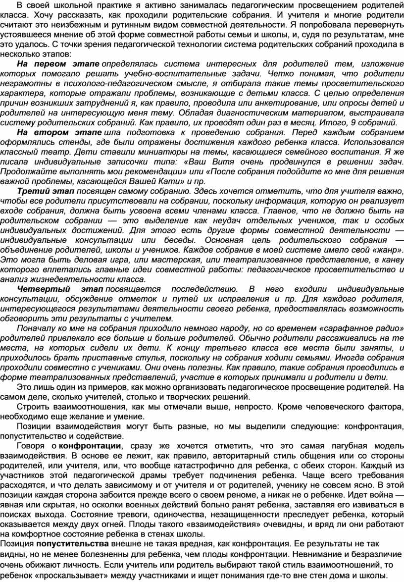 Это лишь один из примеров, как можно организовать педагогическое просвещение родителей. На самом деле, сколько учителей, столько и творческих решений.