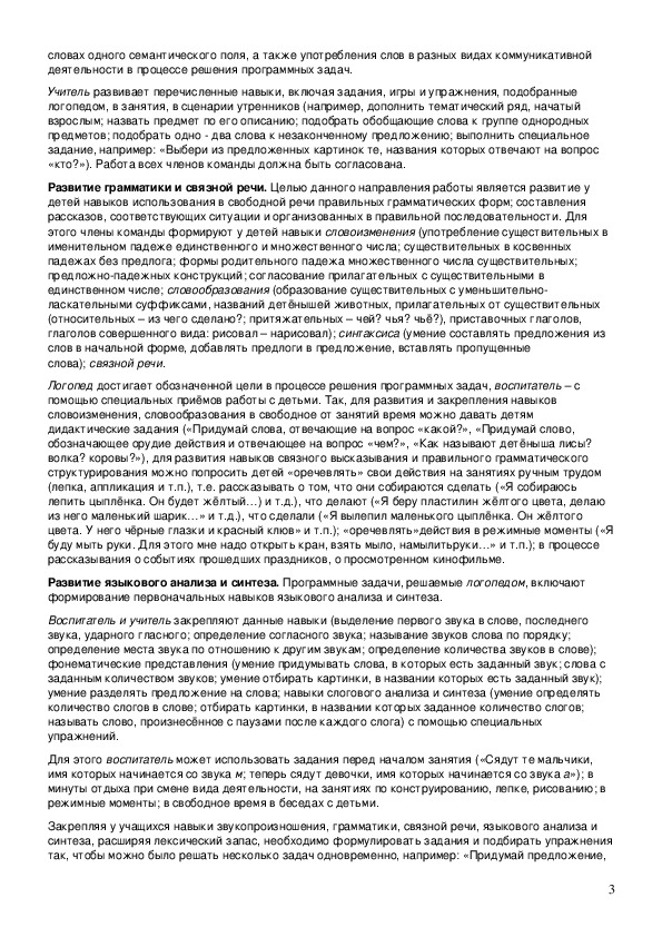 Развитие языкового анализа и синтеза. Программные задачи, решаемые логопедом, включают