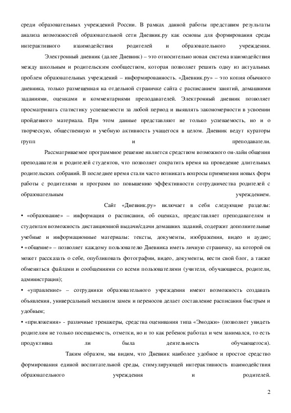 Дневник.ру на сегодняшний день является наиболее удобным и популярным средствомсреди образовательных учреждений России. В рамках данной работы представим результаты