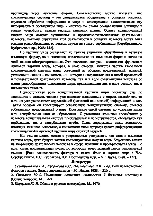 1. Серебренников Б.А., Кубрякова Е.С., Постовалова В.И. и др. Роль человеческого