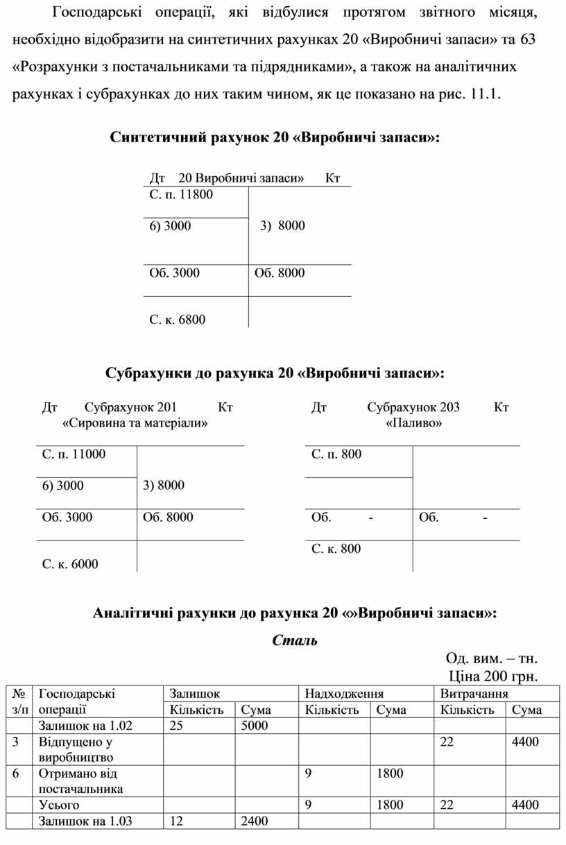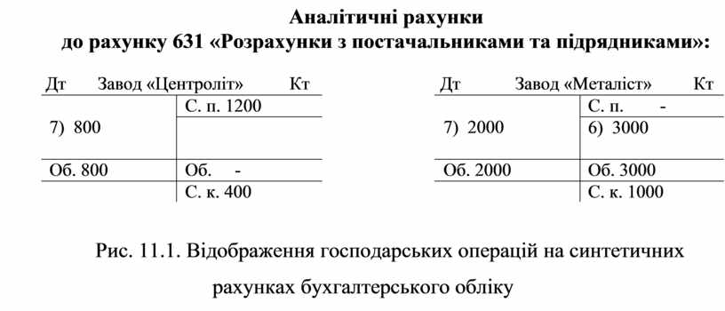 «Розрахунки з постачальниками та підрядниками», а також на аналітичних рахунках і субрахунках до них таким чином, як це показано на рис. 11.1.