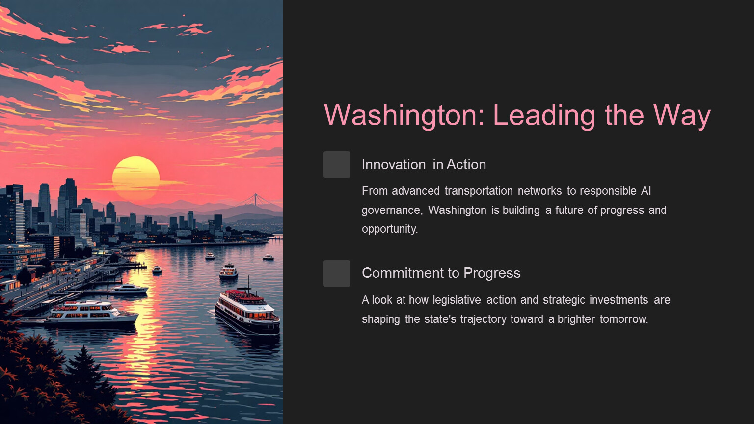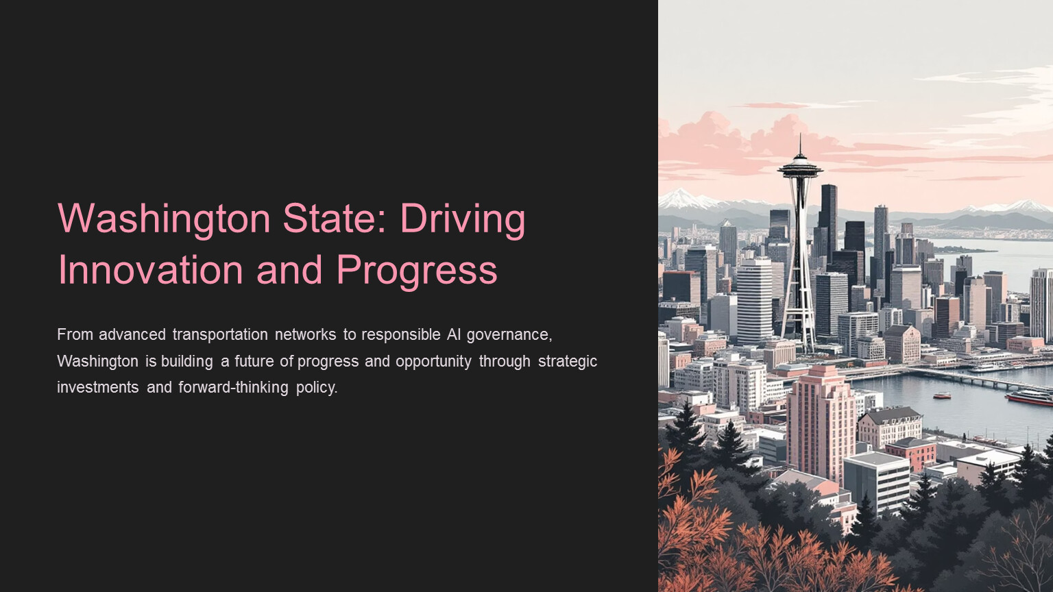 From advanced transportation networks to responsible AI governance, Washington is building a future of progress and opportunity through strategic investments and forward-thinking policy.