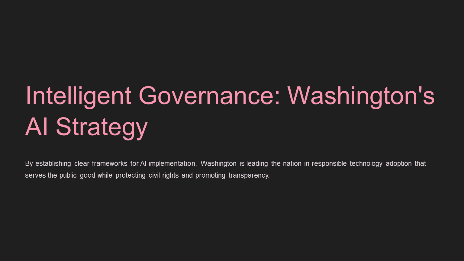 By establishing clear frameworks for AI implementation, Washington is leading the nation in responsible technology adoption that serves the public good while protecting civil rights and promoting transparency.