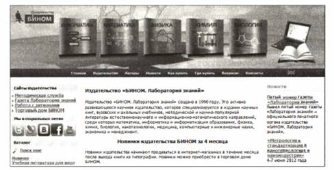 Рис. 2.6. Фрагмент главной страницы сайта издательства БИНОМ