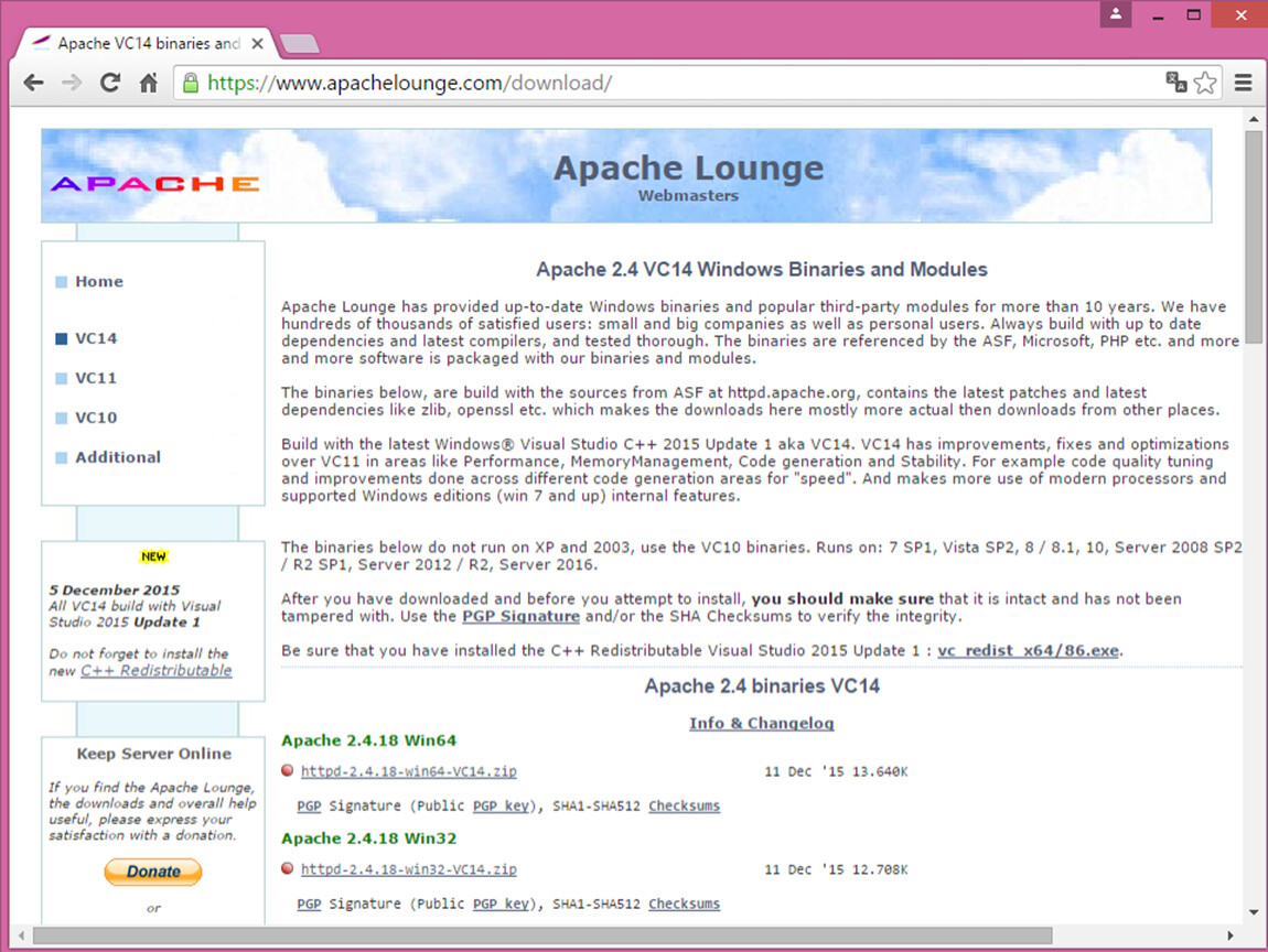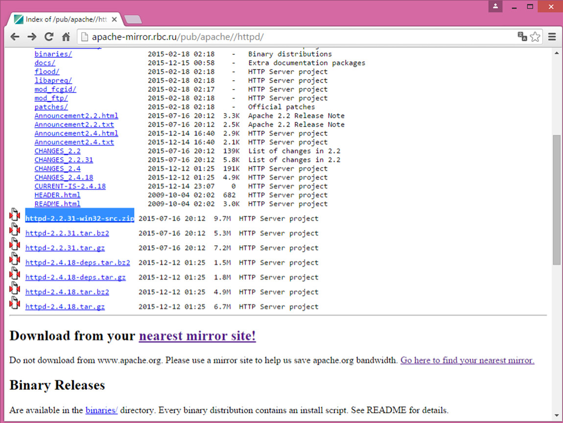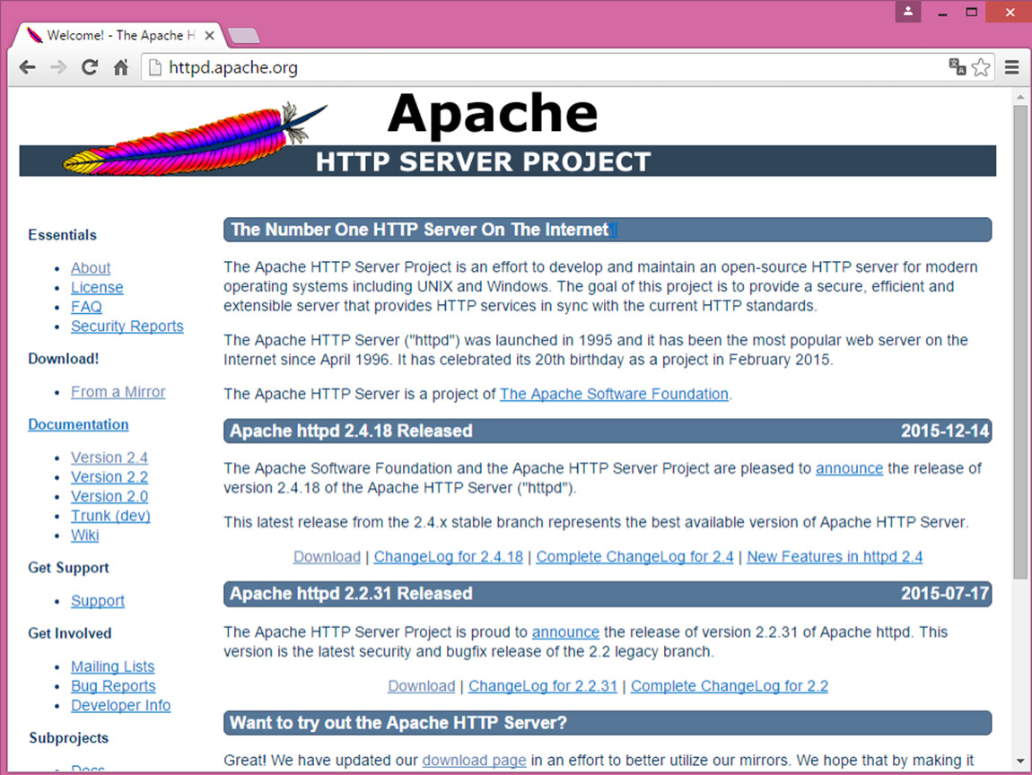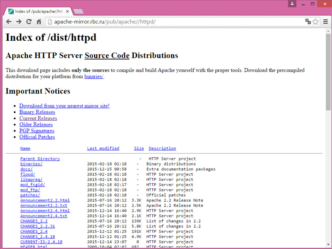 Последняя версия http://httpd.apache.orgApache 2.4.18 Apache 2.2.31 (для Windows)
