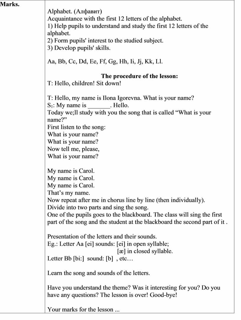 T: Hello, my name is Ilona Igorevna. What is your name? S1: My name is _______. Hello. Today we;ll study with you the song that is called “What is your name?” First listen to the song: What is your name? What is your name? Now tell me, please, What is your name?