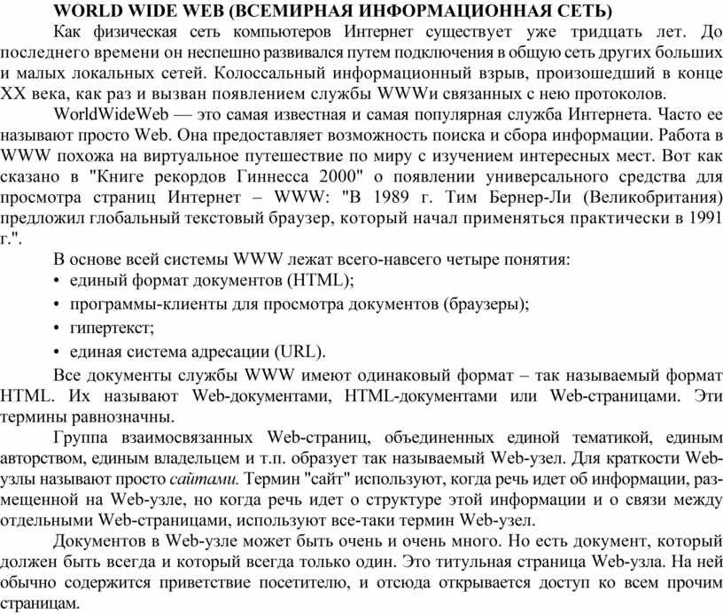 WORLD WIDE WEB (ВСЕМИРНАЯ ИНФОРМАЦИОННАЯ СЕТЬ)