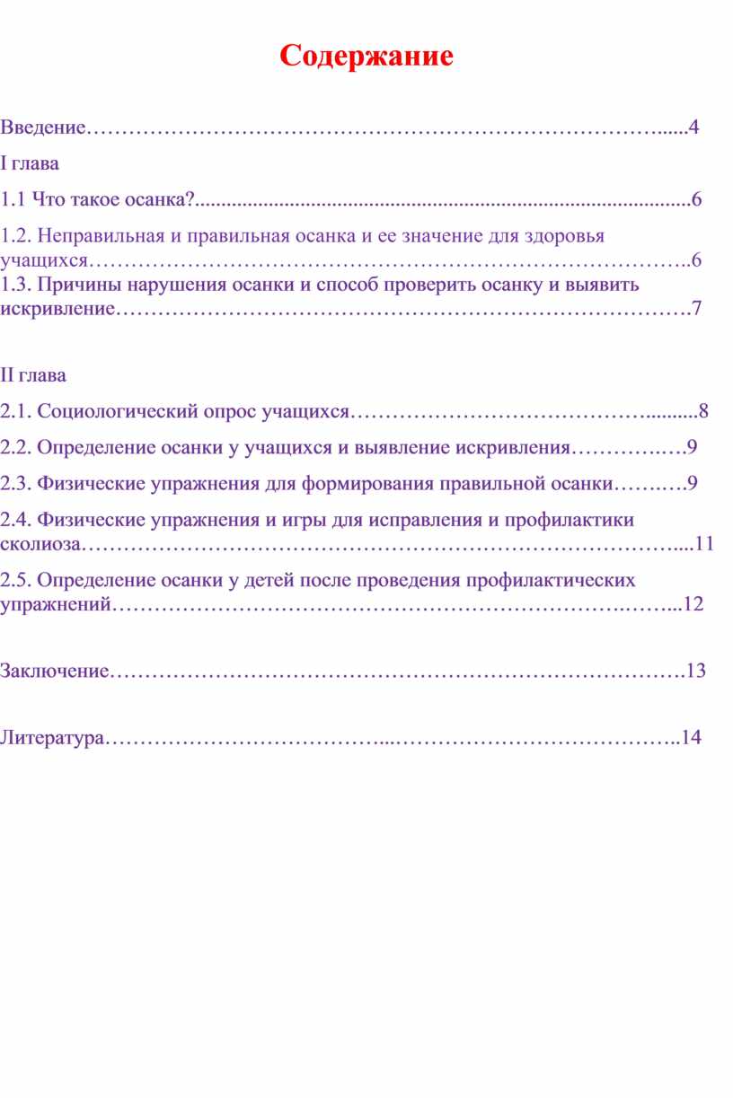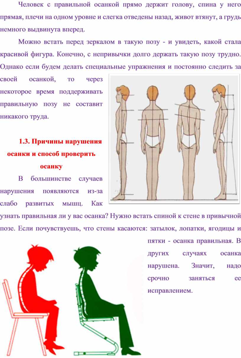 1.3. Причины нарушения осанки и способ проверить осанку и выявить искривление……………………………………………………………………….7