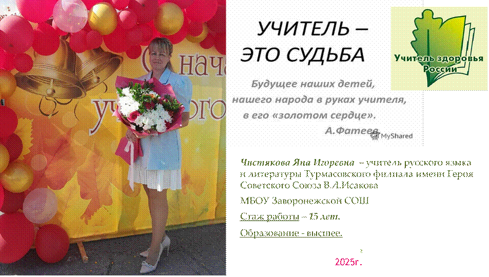 Работу выполнила: Чистякова Яна Игоревна, классный руководитель, учитель русского языка и литературы