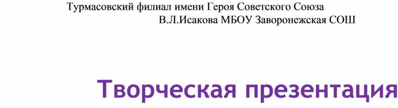 Турмасовский филиал имени Героя Советского Союза В.Л.Исакова МБОУ Заворонежская СОШ