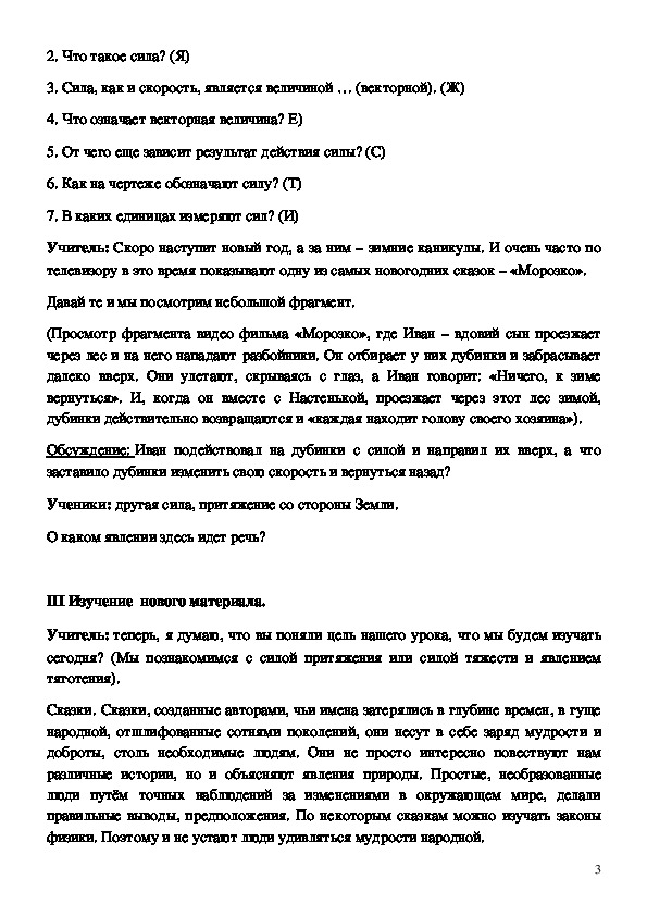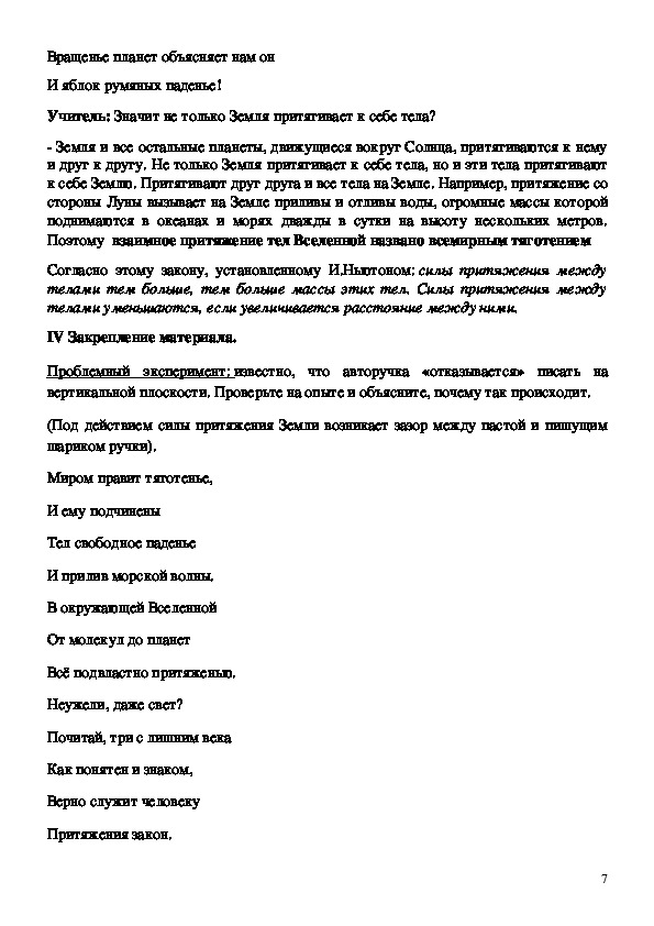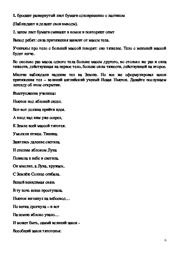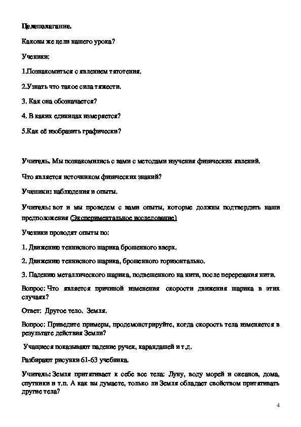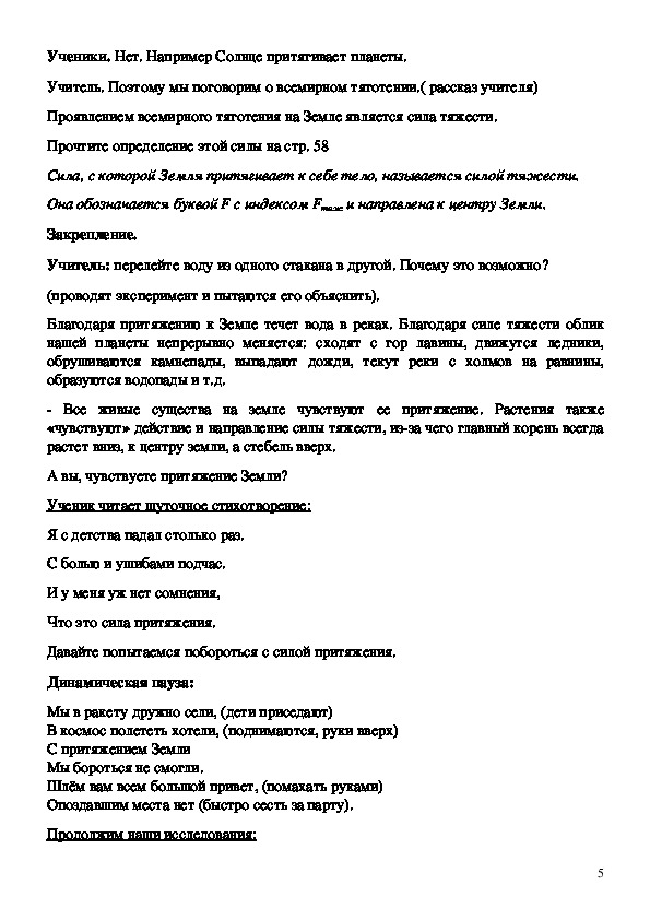 сегодня? (Мы познакомимся с силой притяжения или силой тяжести и явлением