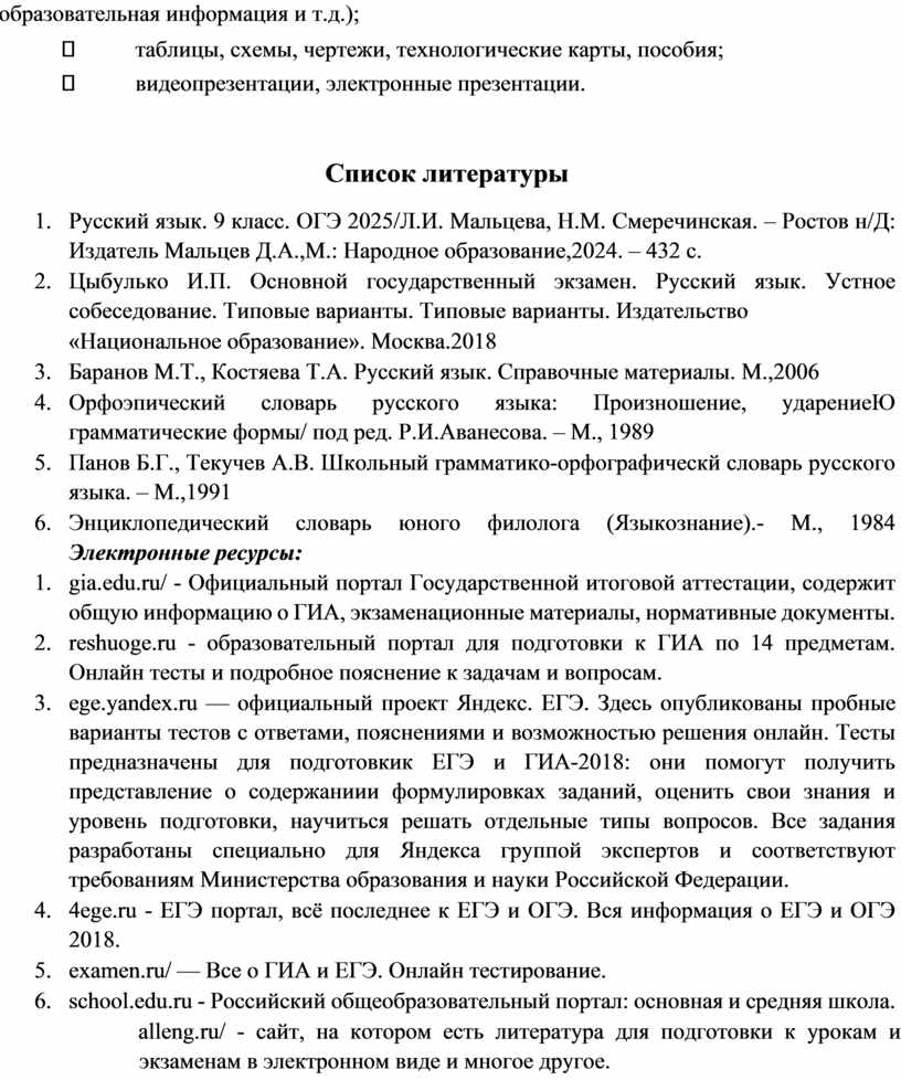 1. Русский язык. 9 класс. ОГЭ 2025/Л.И. Мальцева, Н.М. Смеречинская. – Ростов н/Д: Издатель Мальцев Д.А.,М.: Народное образование,2024. – 432 с.