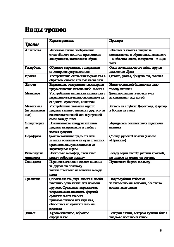 тропов). Найдите тропы во втором тексте. (Работа с терминами: