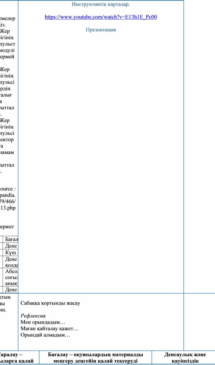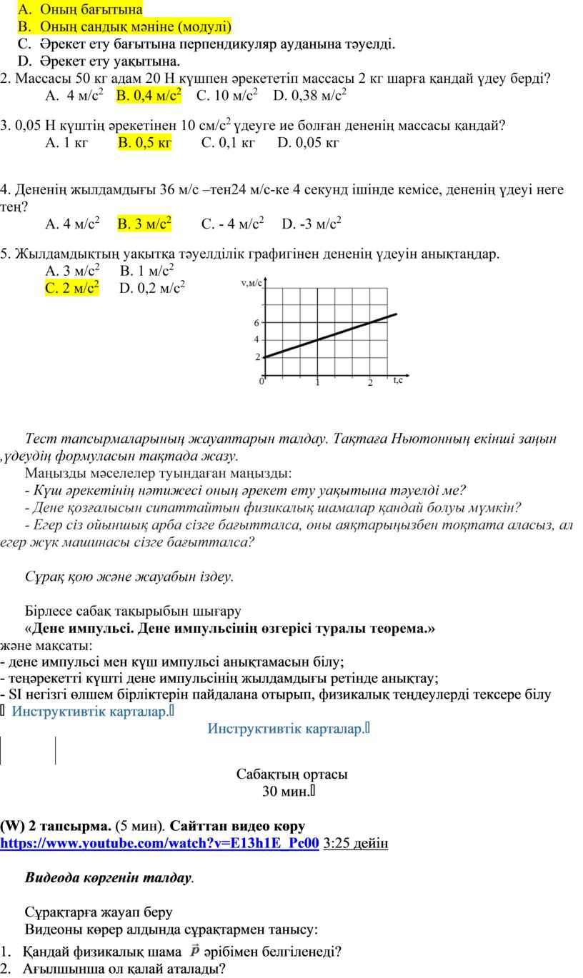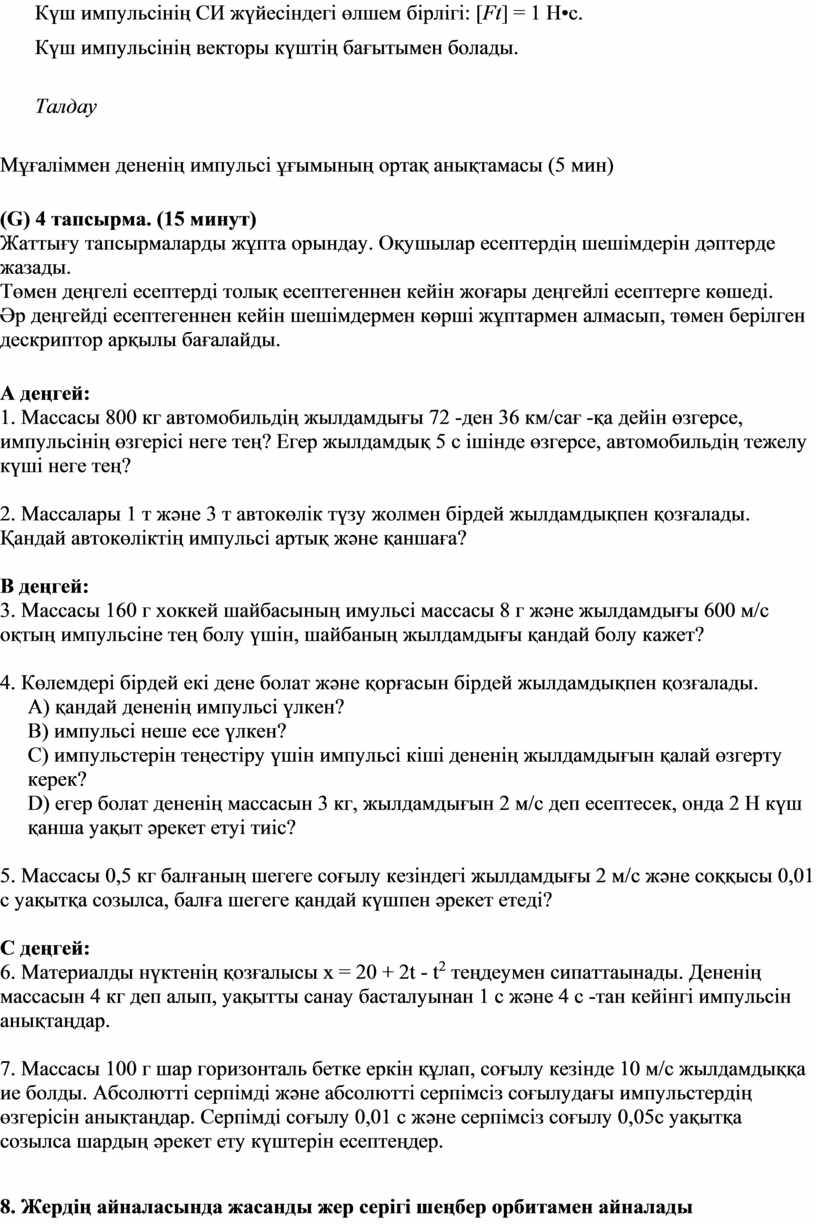 Пәндік терминдер мен сөздер: Күш, әрекеттесу уақыты, масса, үдеу, импульс, импульстің өзгерісі. Диалогтар мен хаттарға арналған пайдалы создер: Ұсынылған денелерден үлкен (аз импульске ие ... … Білу маңызды, өйткені ... Алынған деректер деп ..... |