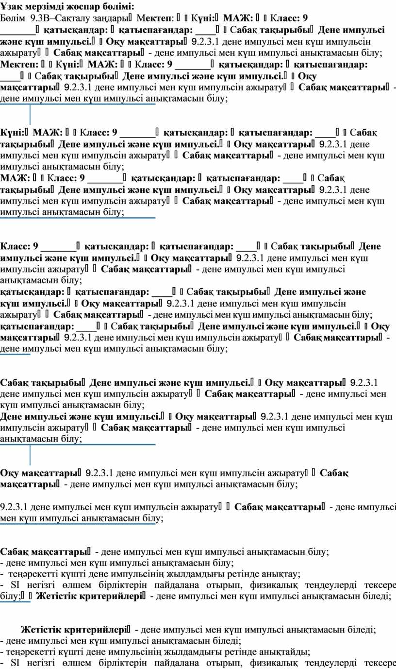 Ұзақ мерзімді жоспар бөлімі: Бөлім 9.3В–Сақталу заңдары |
