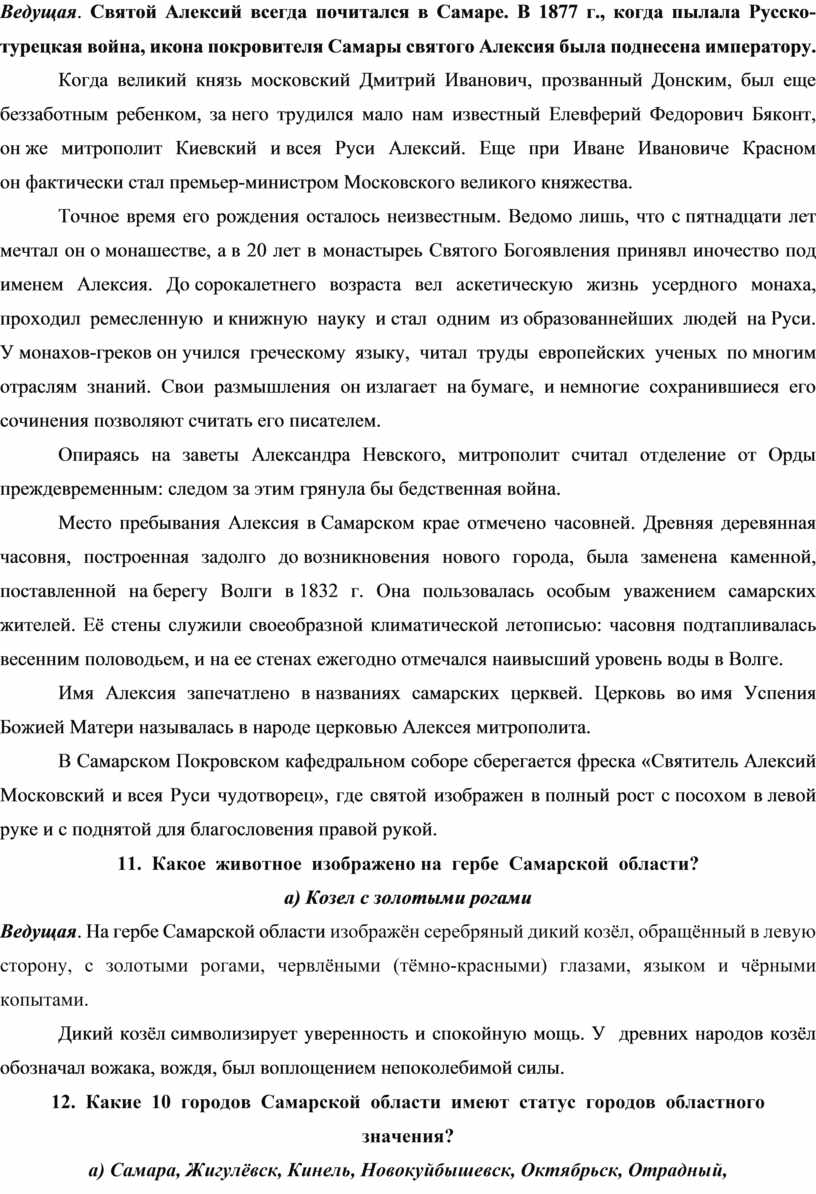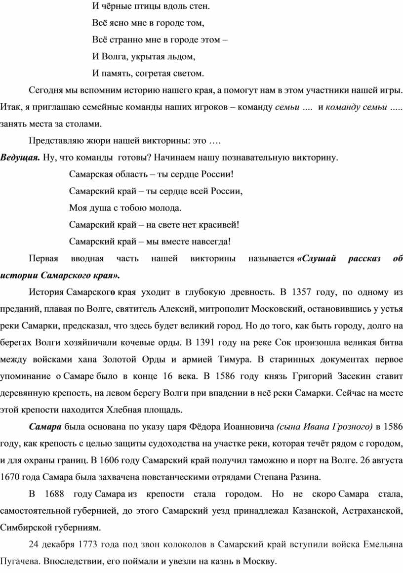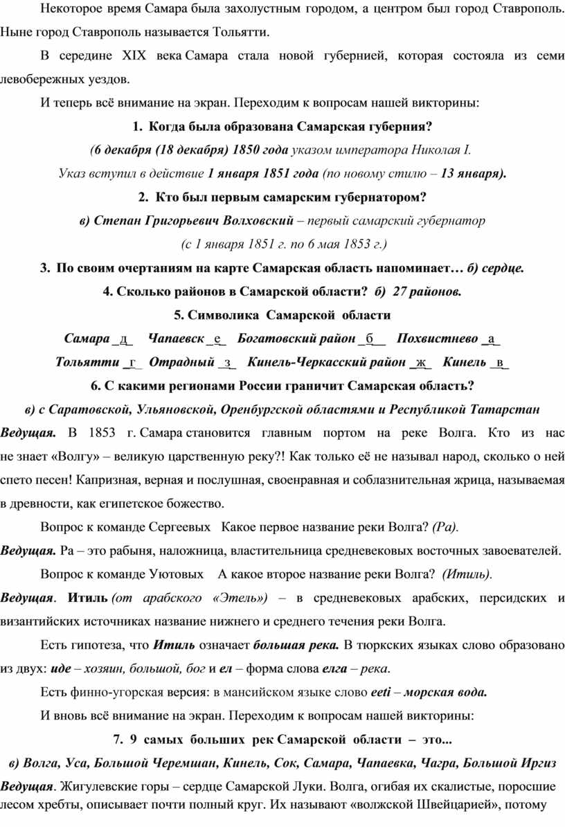 Первая вводная часть нашей викторины называется «Слушай рассказ об истории Самарского края».
