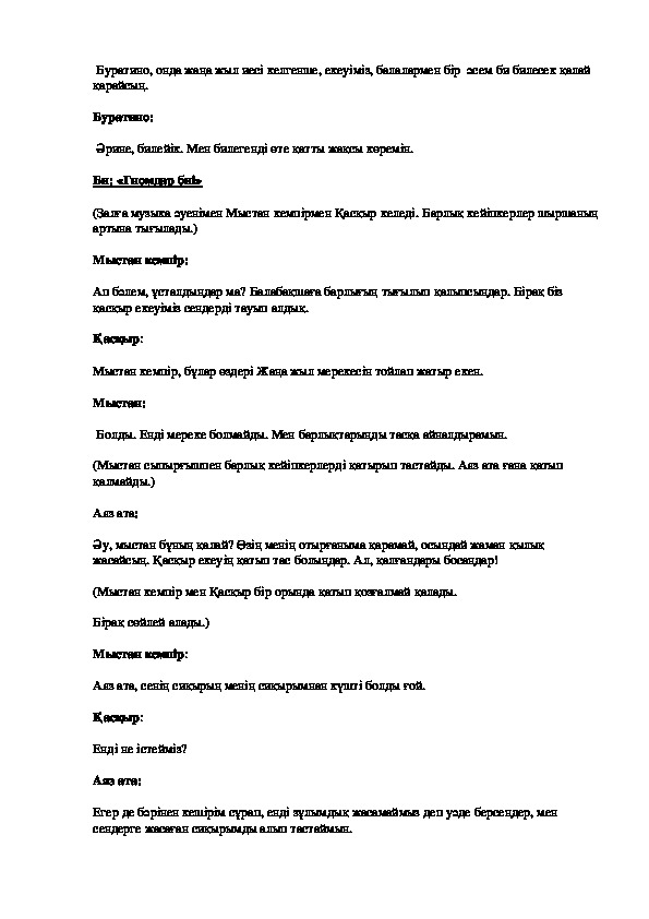 Қызым сен бүгін «Айгөлек» балабақшасына барып қайт. Ол жақта балалар Жаңа Жыл