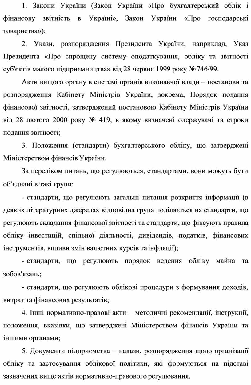 2. Закони України (Закон України «Про бухгалтерський облік і фінансову звітність в Україні», Закон України «Про господарські товариства»);