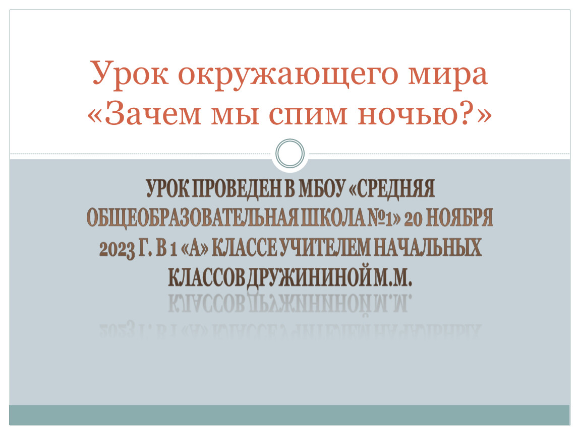 Урок проведен в МБОУ «Средняя общеобразовательная школа №1» 20 ноября 2023 г. в 1 «А» классе учителем начальных классов Дружининой М.М.