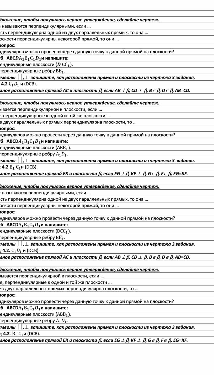 1.1 Прямая называется перпендикулярной к плоскости, если … |