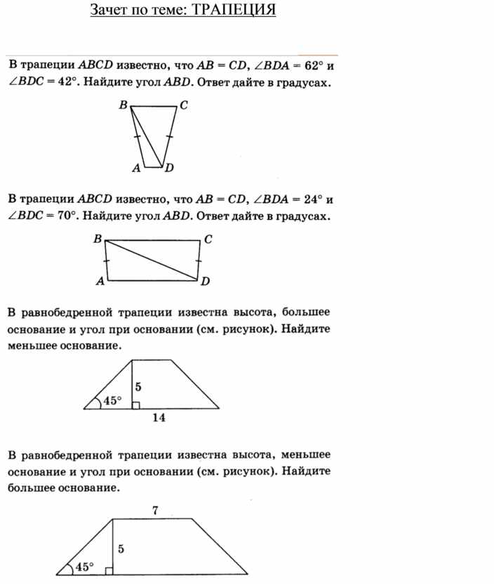 Зачет по теме: ТРАПЕЦИЯ
