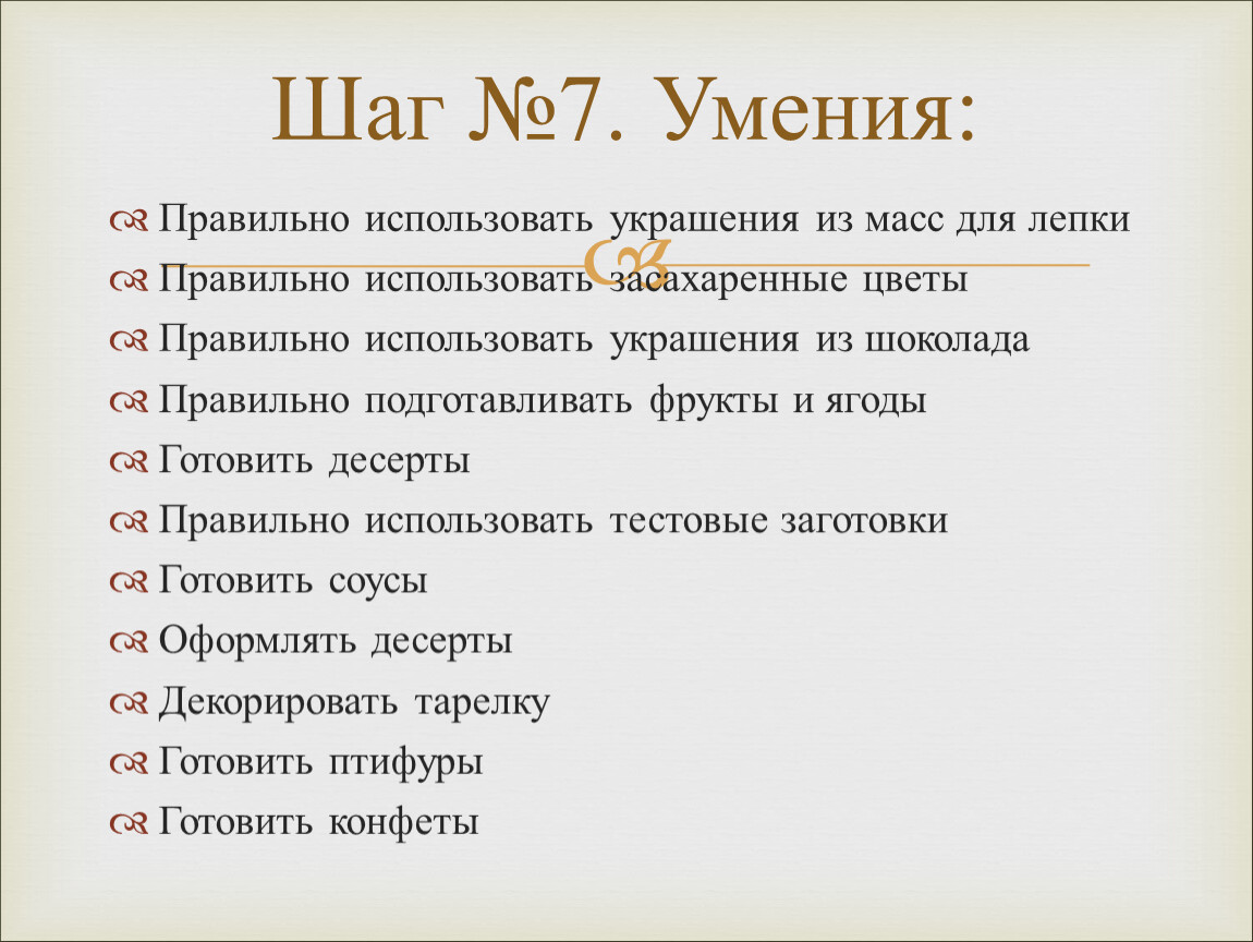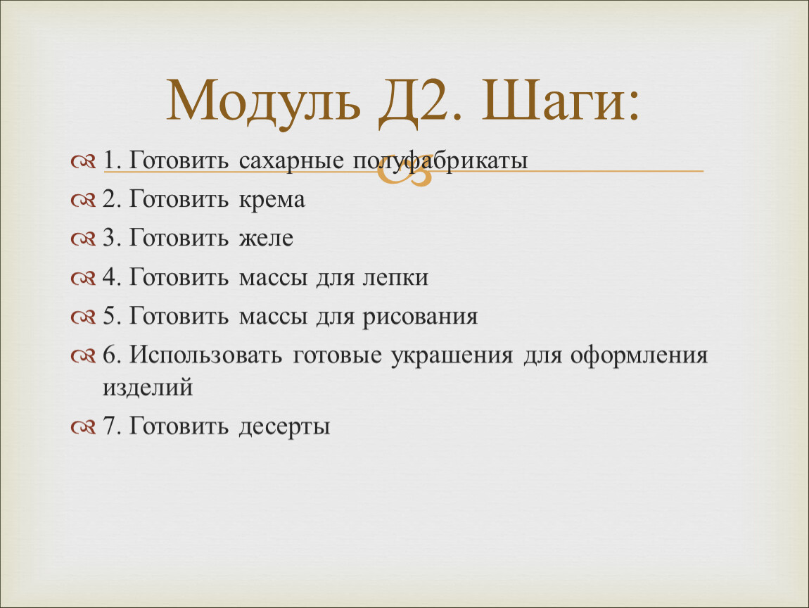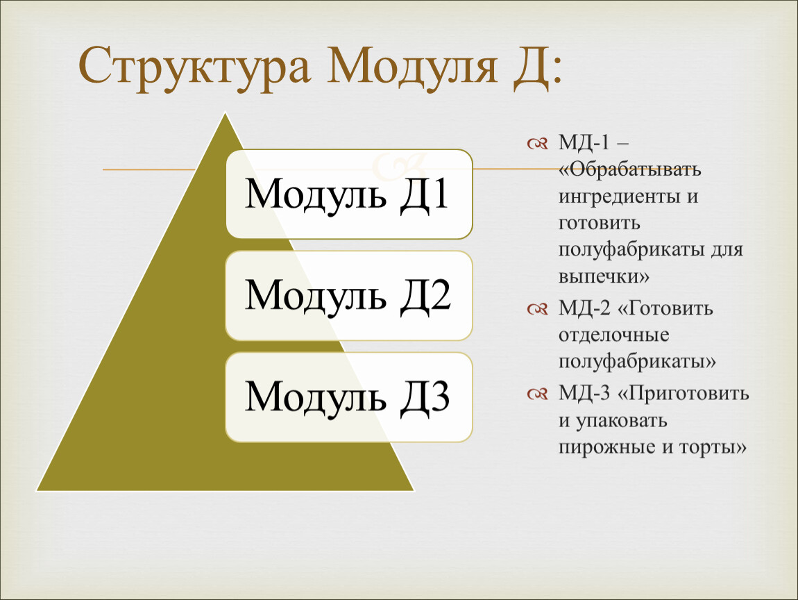 МД-1 – «Обрабатывать ингредиенты и готовить полуфабрикаты для выпечки»