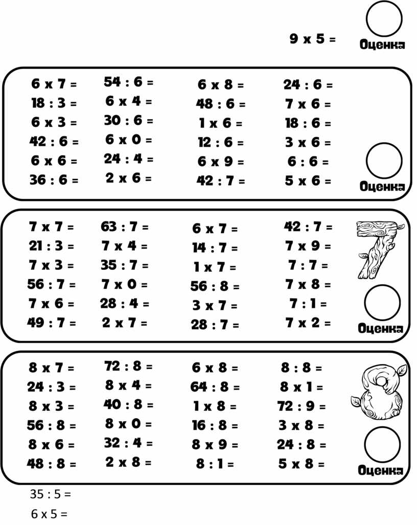 5 х 7 = 15 : 3 = 5 х 3 =
