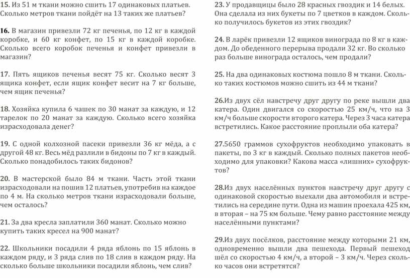 20. В мастерской было 84 м ткани. Часть этой ткани израсходовали на пошив 12 платьев, употребив на каждое по 4 м. На сколько метров ткани израсходовали больше, чем осталось?