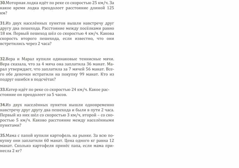 30.Моторная лодка идёт по реке со скоростью 25 км/ч. За какое время лодка преодолеет расстояние длиной 125 км?