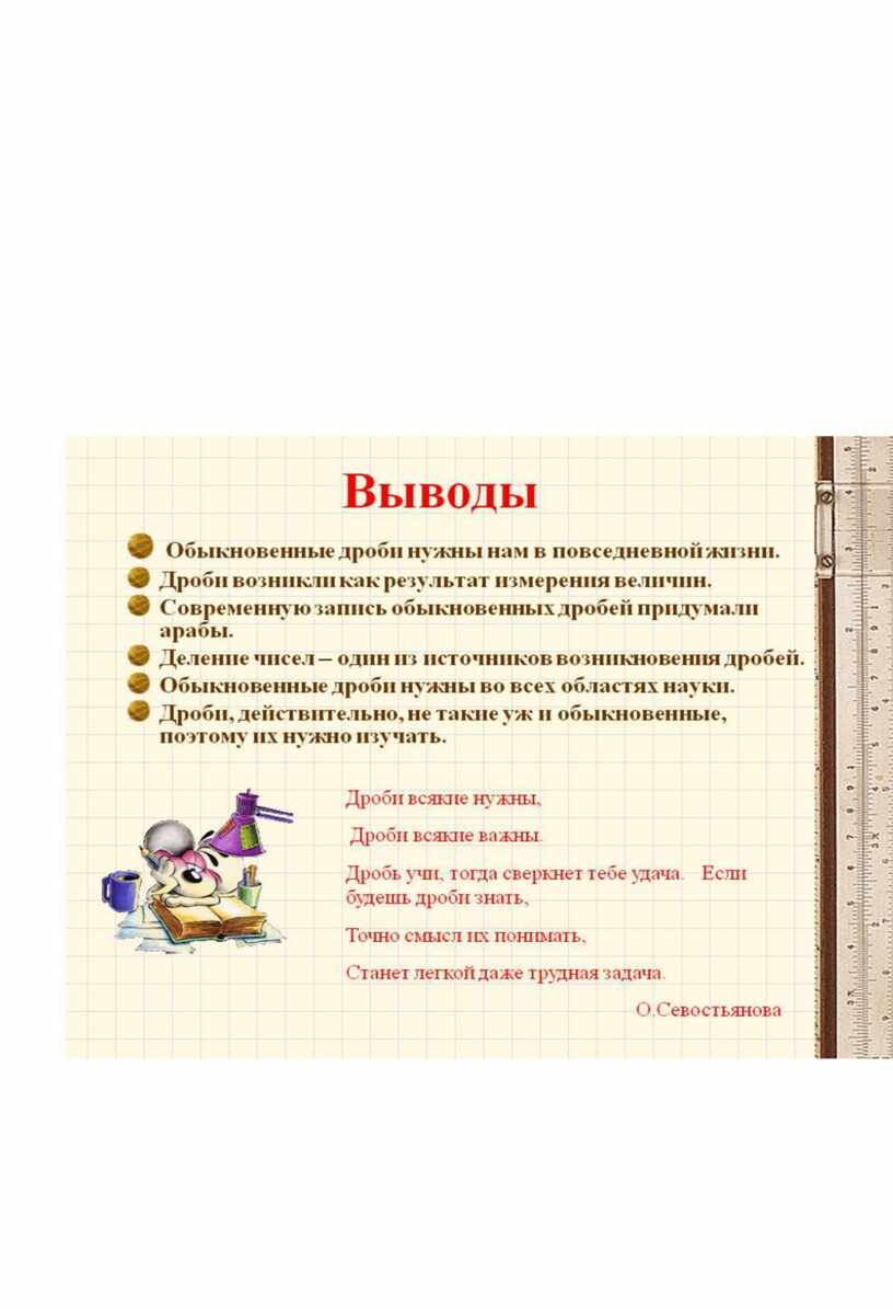 Я считаю, что моя работа поможет не только мне, но и моим одноклассникам, а также ребятам из других классов в изучении и повторении дробей.
