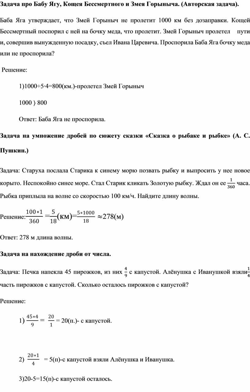 Глава 3. Задачи на дроби с сюжетом из сказок