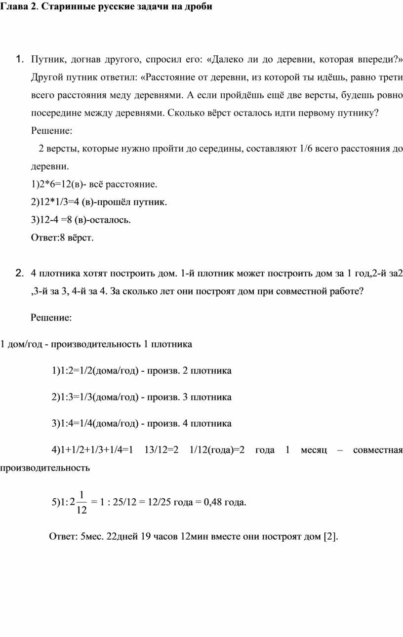Глава 2. Старинные русские задачи на дроби………………………………………….5