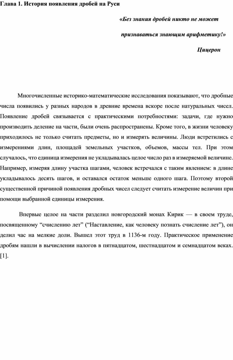 Глава 1. История появления дробей на Руси…………………………………………...4