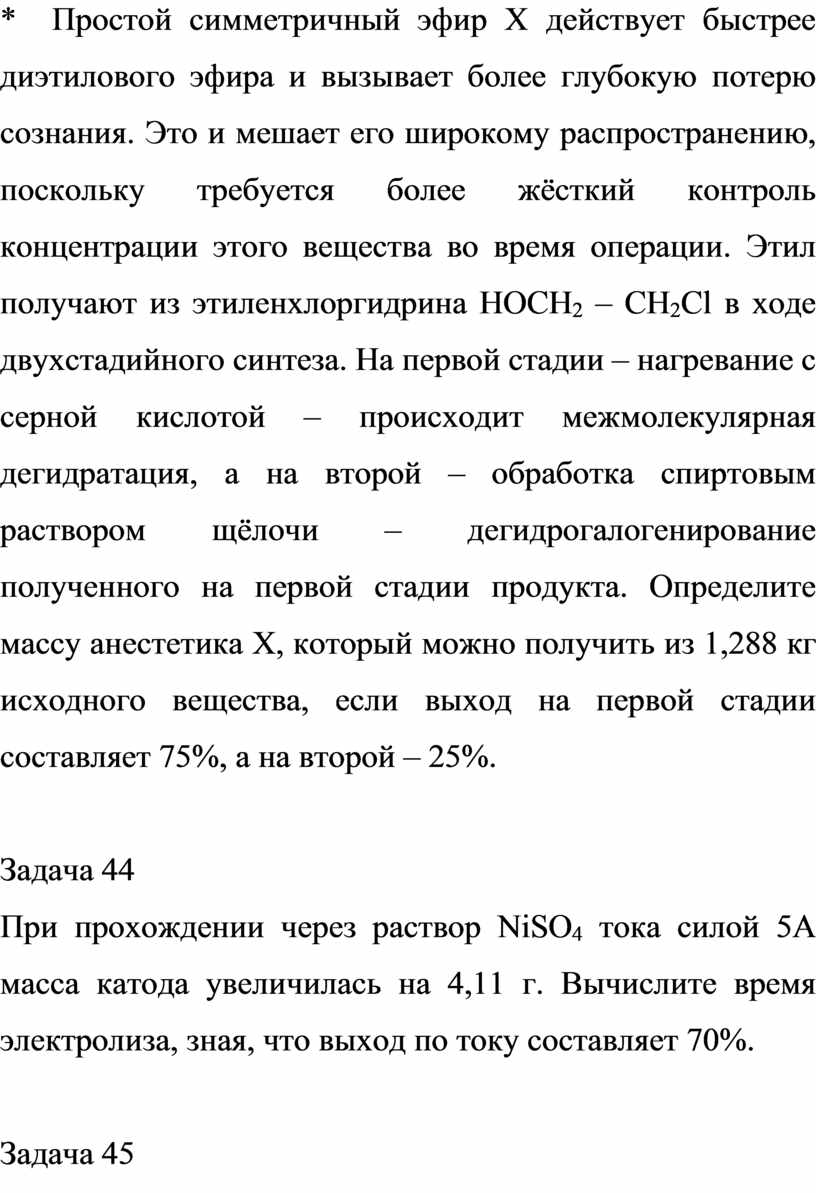 Из 46 г этилового спирта С2Н5ОН было получено 18,5 г диэтилового эфира С2Н5 – О - С2Н5. Какова массовая доля выхода эфира по сравнению с теоретически возможным?