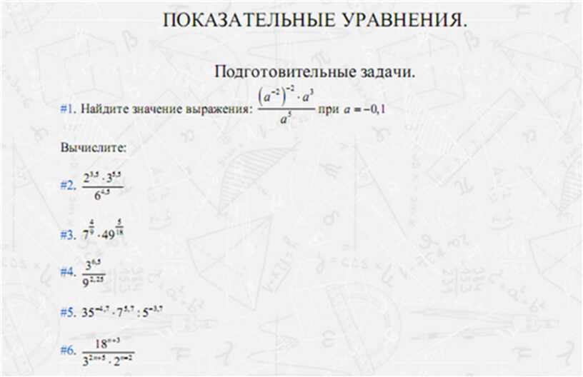 задачи по алгебре для подогтовки к ОГЭ_показательные уравнения_1.docx
