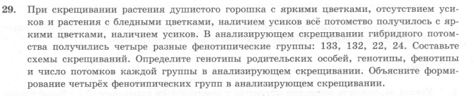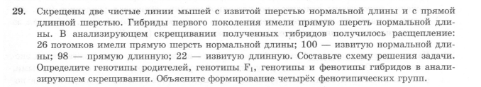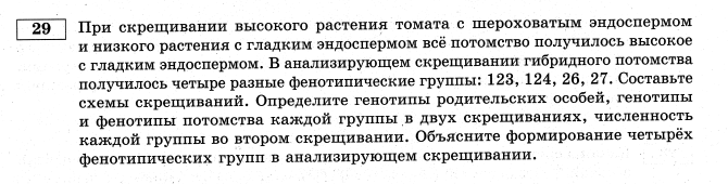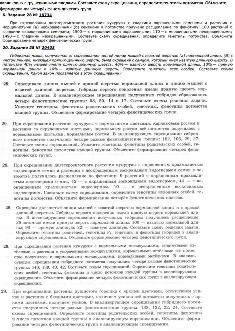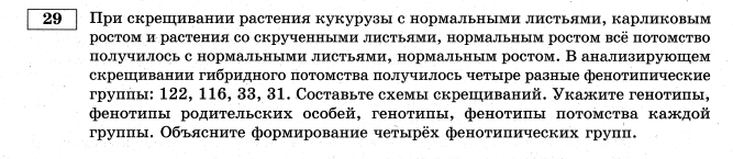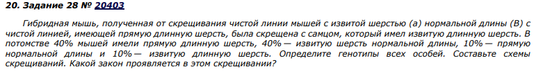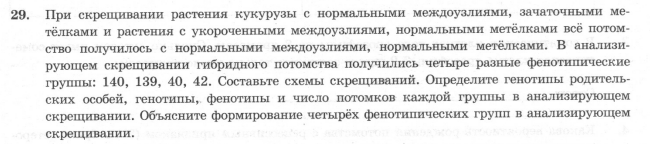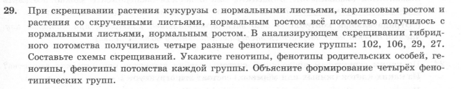 5. Задание 28 № 16684 При скрещивании дигетерозиготного высокого растения томата с округлыми плодами и карликового (a) растения с грушевидными плодами (b) в потомстве получено расщепление по фенотипу: 12 растений высоких с округлыми плодами; 39 — высоких с грушевидными плодами; 40 — карликовых с округлыми плодами; 14 — карликовых с грушевидными плодами. Составьте схему скрещивания, определите генотипы потомства. Объясните формирование четырёх фенотипических групп.