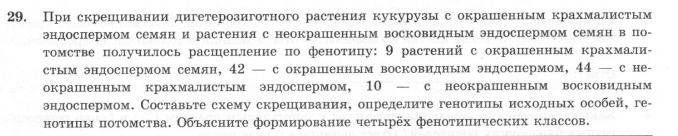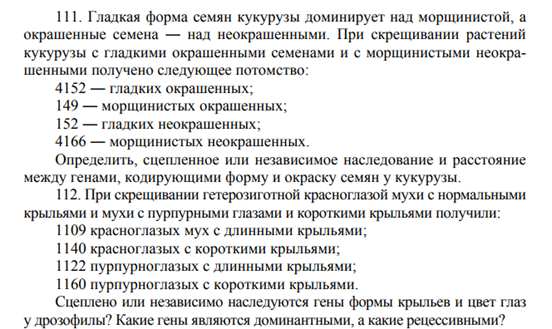 Определить тип наследования (сцепленное или независимое) и расстояние между генами, кодирующими форму и окраску семян у кукурузы.