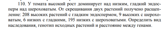 Определить расстояние между генами, кодирующими рост растения и форму плодов.