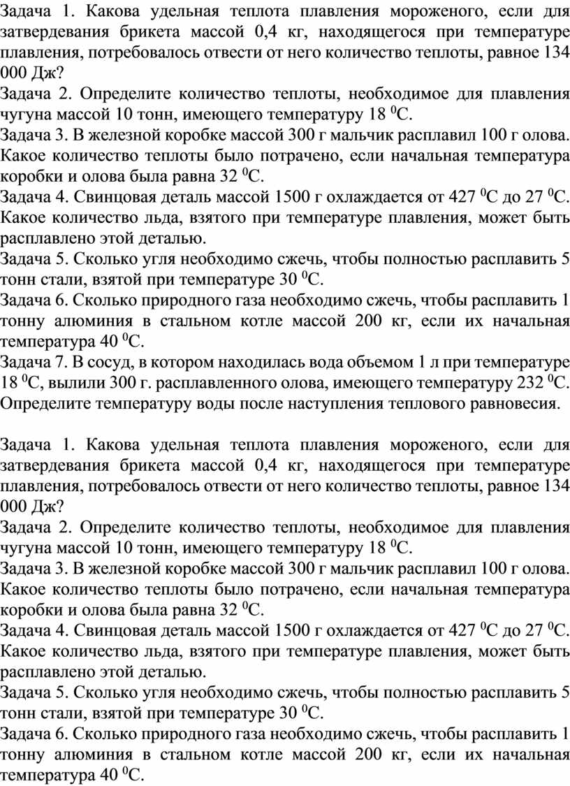 Задача 2. Определите количество теплоты, необходимое для плавления чугуна массой 10 тонн, имеющего температуру 18 0С.