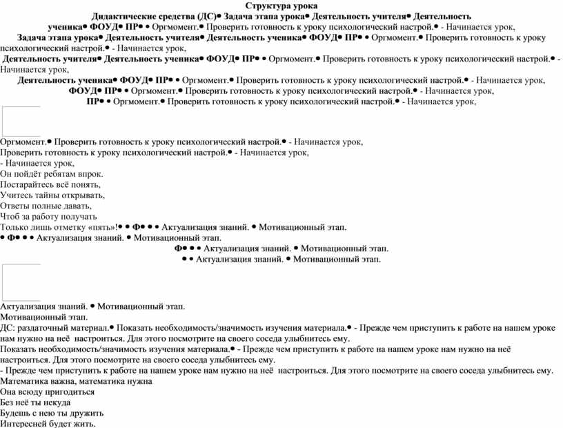 Структура урока Дидактические средства (ДС) |