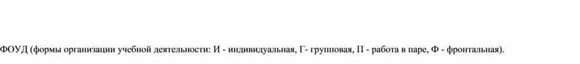 ФОУД (формы организации учебной деятельности: И - индивидуальная, Г- групповая, П - работа в паре, Ф - фронтальная).