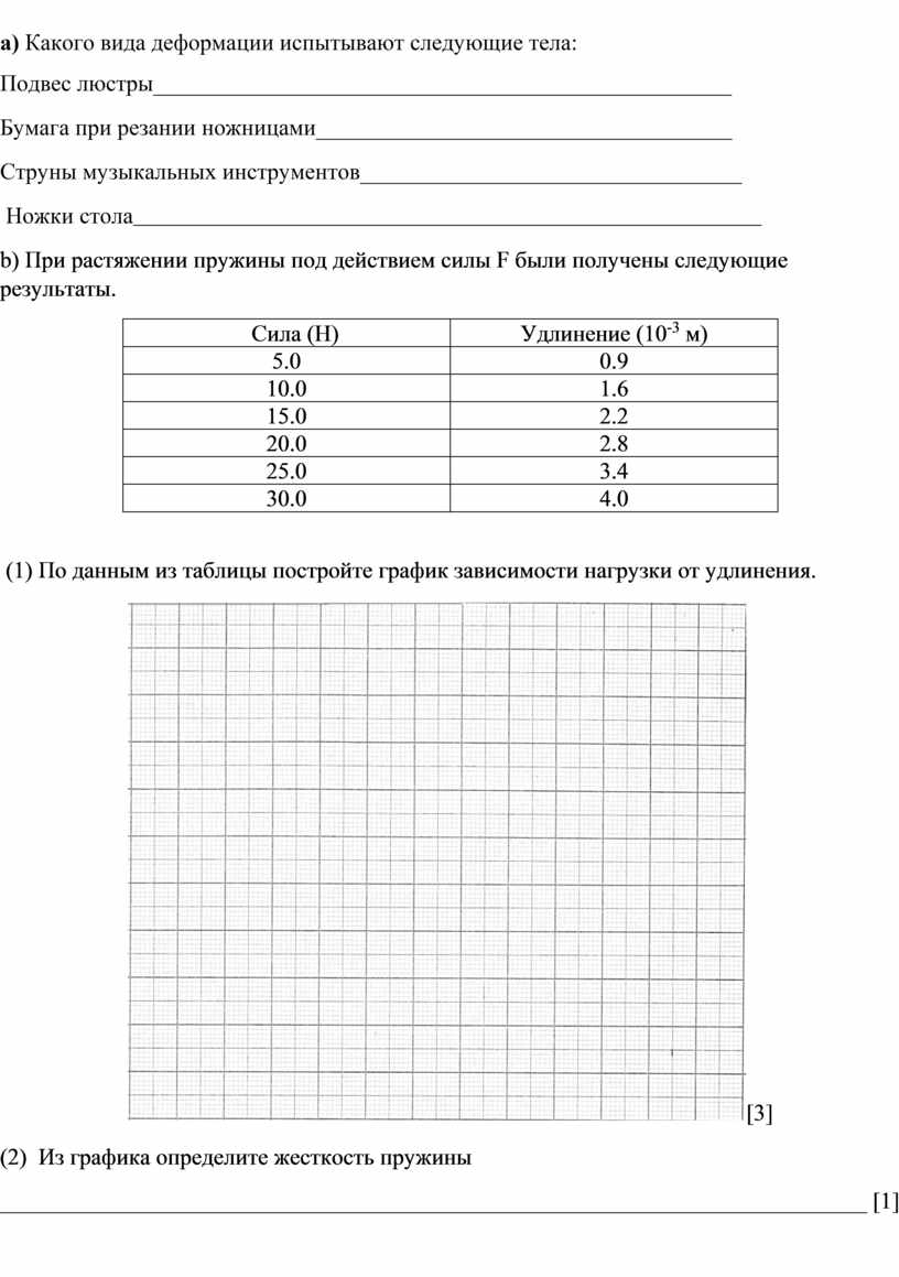 (1) По данным из таблицы постройте график зависимости нагрузки от удлинения.