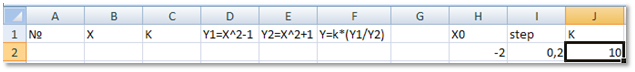 Это означает, что в этой ячейке начальное значение x будет увеличено на величину шага, которая берется из ячейки I2.