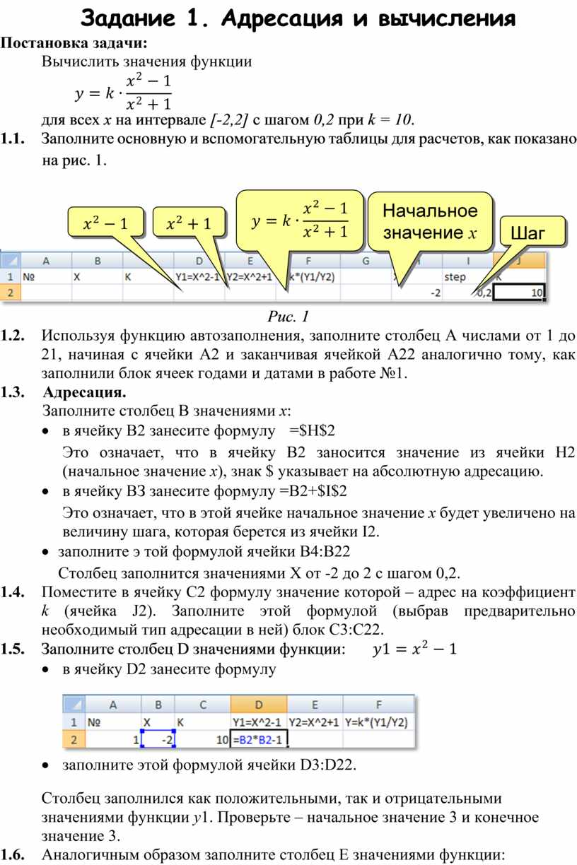 1.1. Заполните основную и вспомогательную таблицы для расчетов, как показано на рис. 1.