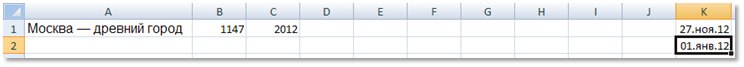 1.5. В ячейку К1 занесите текущую дату. В ячейку К2 занесите дату 1 января текущего года. Формат ввода даты: