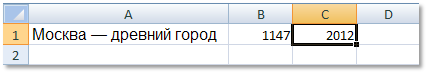 1.4. В ячейку В1 занесите число 1147 (это год основания Москвы). В ячейку С1 занесите число – текущий год:
