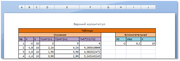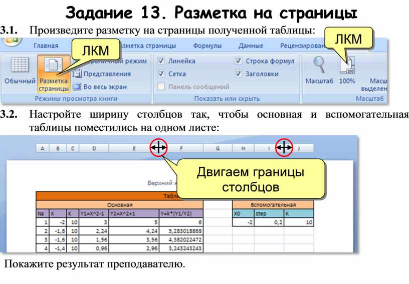 3.2. Настройте ширину столбцов так, чтобы основная и вспомогательная таблицы поместились на одном листе: